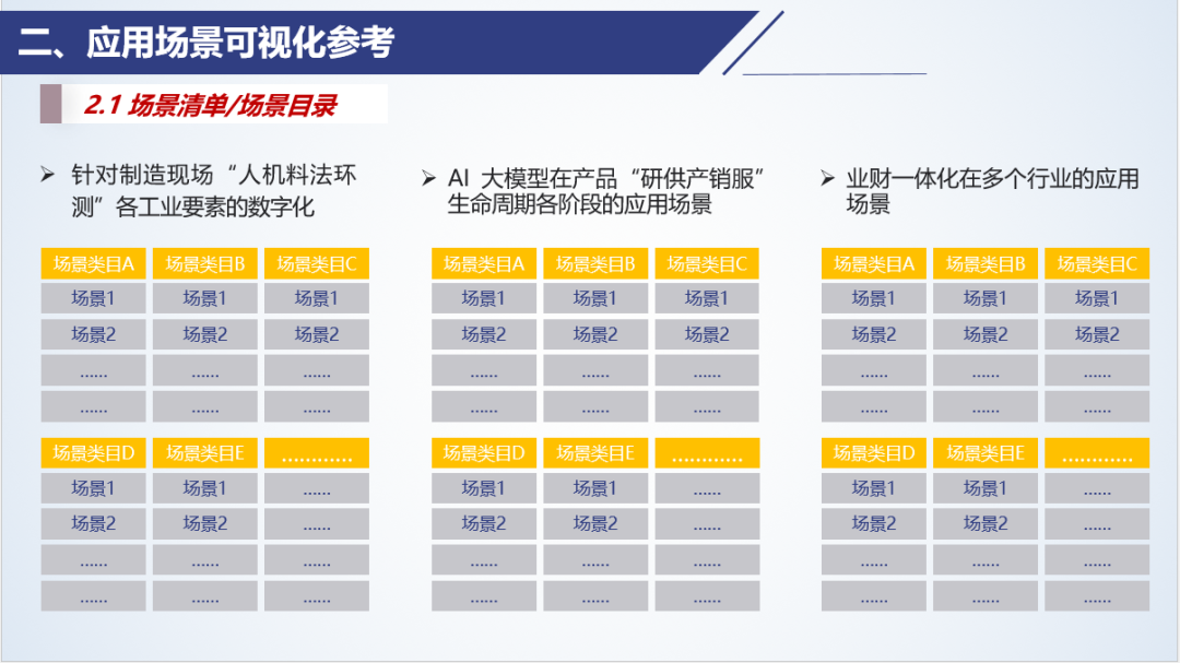 按照特定的順序或類別展示各種應(yīng)用場景的場景列表,企業(yè)和平臺也需要編制一個總的場景目錄。