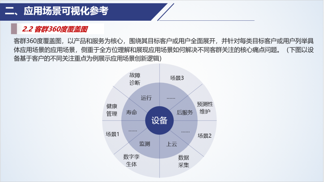 以產(chǎn)品和服務(wù)為核心,圍繞其目標客戶或用戶全面展開,并針對每類目標客戶或用戶列舉具體應(yīng)用場景的應(yīng)用場景地圖,可以稱為“產(chǎn)品/服務(wù)中心的客群360度覆蓋地圖”,此地圖側(cè)重于全方位理解和展現(xiàn)產(chǎn)品或服務(wù)如何在不同客戶群體的生活或工作中發(fā)揮作用。