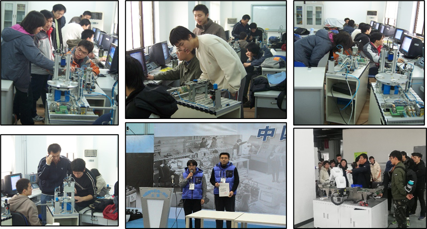 學(xué)習(xí)工廠以實際工業(yè)級智能制造技術(shù)為核心,形成一個完整的企業(yè)級信息化體系。在此基礎(chǔ)上,圍繞四個維度課程體系,以一件典型產(chǎn)品的智能制造過程為引導(dǎo)設(shè)置實踐環(huán)節(jié),理清分散的實踐環(huán)節(jié)內(nèi)在的邏輯關(guān)系,支撐“設(shè)計仿真-數(shù)字制造-試驗測試-實物制造”的培養(yǎng)模式。主要內(nèi)容包括:全集成自動化、制造裝備控制系統(tǒng)設(shè)計、傳感技術(shù)與數(shù)據(jù)采集、智能生產(chǎn)線設(shè)計與仿真、制造運營管理課程設(shè)計、智能裝備故障診斷與維護(hù)。