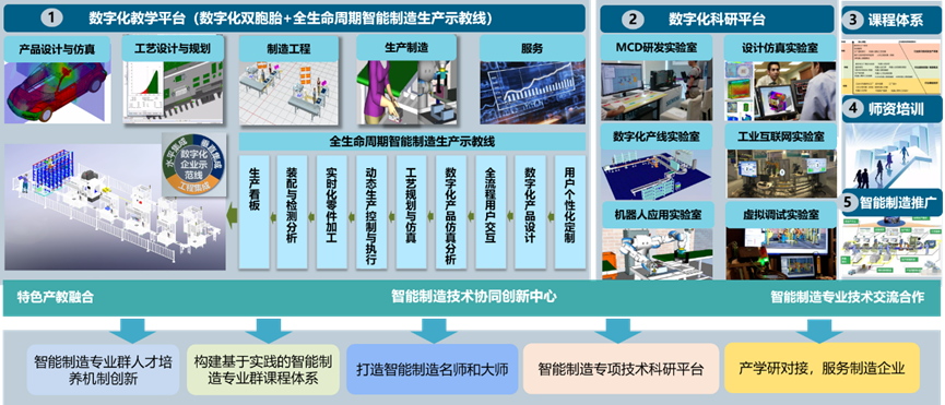 體系創(chuàng)新:首次提出四維專業(yè)課程體系,首創(chuàng)基于智能制造學(xué)習(xí)工廠的實踐體系,形成縱向有深度、橫向有廣度、虛實結(jié)合的理論與實踐教學(xué)架構(gòu);結(jié)合西門子、天拓四方等企業(yè)在工業(yè)互聯(lián)網(wǎng)方面的優(yōu)勢,打造網(wǎng)絡(luò)協(xié)同制造軟件集群,并實現(xiàn)跨設(shè)備、跨系統(tǒng)的互聯(lián)互通,打造了科研、教學(xué)、展示、推廣于一體的網(wǎng)絡(luò)協(xié)同制造示范平臺。
