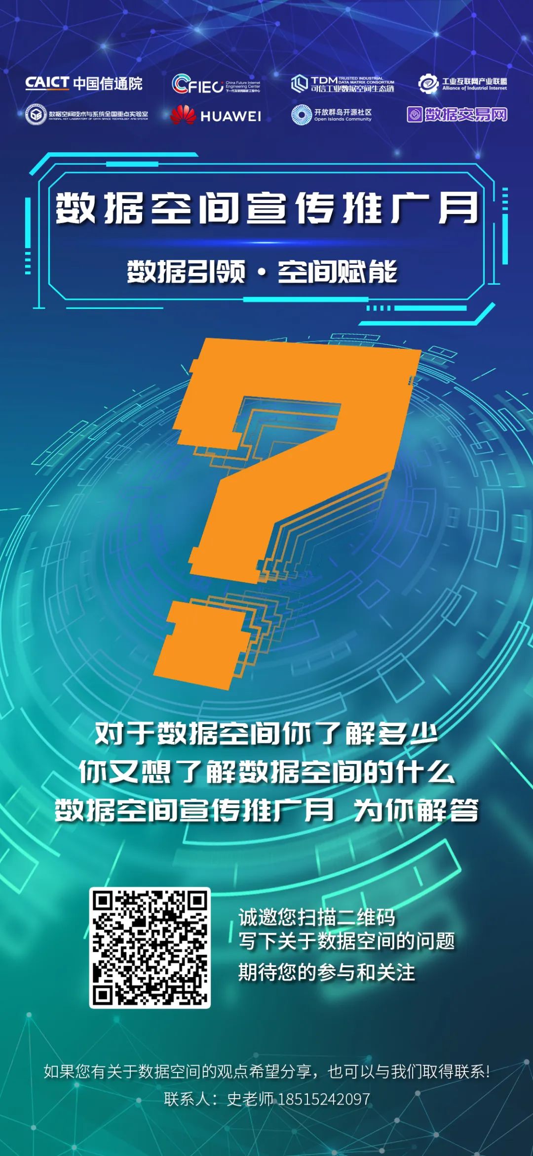 數(shù)據(jù)空間問卷小調(diào)研活動(dòng)強(qiáng)勢來襲!關(guān)于數(shù)據(jù)空間您有任何想咨詢、想了解的內(nèi)容,都可以掃描下方海報(bào)中的二維碼進(jìn)行提問。