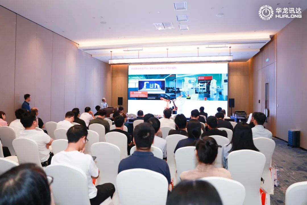 在全會(huì)的現(xiàn)場展示區(qū),華龍訊達(dá)展示了華龍工鴻具身智能工業(yè)機(jī)器人產(chǎn)線以及華龍工鴻“五塊屏”工業(yè)應(yīng)用。
